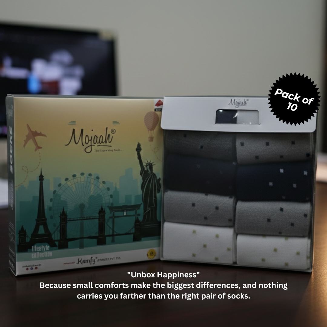 Mojaah Essentials Mens Fine Cotton Elegant Ankle Socks (Pack of 10, Multicolor) | Sweat Absorbent, Moisture Wicking, Ultra Soft, Breathable & Stretchable